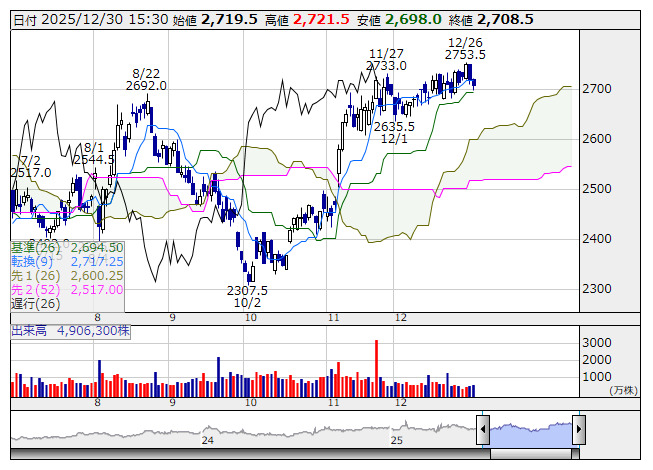 3)株価が均衡表の「雲(抵抗帯)」を上回る
