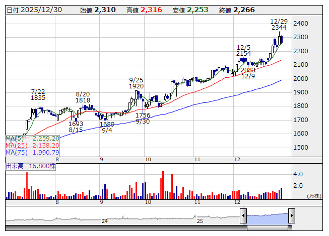 このほか、上期経常利益の通期計画に対する進捗率が80%を超えている、ジュンテンドー <9835> [東証S]、JMACS <5817> [東証S]、キャンドゥ <2698> [東証S]、フェリシモ <3396> [東証S]、カンセキ <9903> [東証S]、識学 <7049> [東証G]、歌舞伎座 <9661> [東証S]、放電精密加工研究所 <6469> [東証S]は業績上振れが期待される。