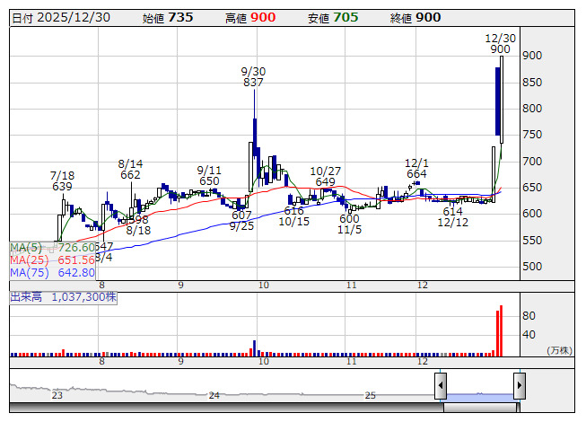 ファインズ <日足> 「株探」多機能チャートより●今週の約定回数増加率ランキング【ベスト50】