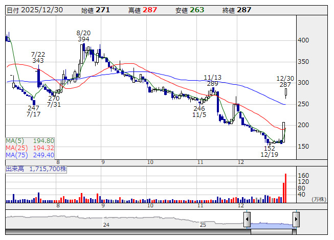 【材料】週間ランキング【値上がり率】 (12月30日)