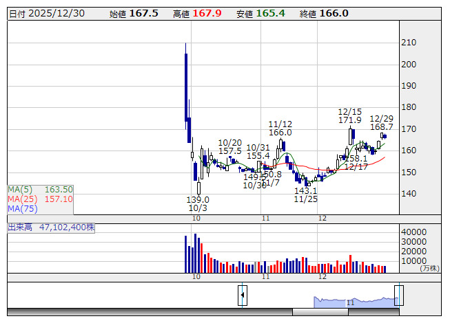 ソニーFG <日足> 「株探」多機能チャートより●信用買い残減少ランキング【ベスト50】