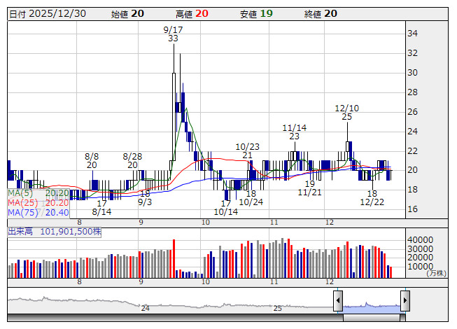 Jディスプレ <日足> 「株探」多機能チャートより●信用買い残増加ランキング【ベスト50】