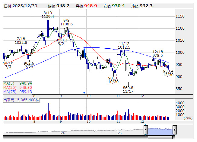 パンパシHD <日足> 「株探」多機能チャートより●信用売り残増加ランキング【ベスト50】