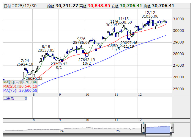 2026年01月05日08時46分 【市況】JPX日経400先物:5日寄り付き=220ポイント高、3万1000ポイント JPX日経400 <日足> 「株探」多機能チャートより 5日8時45分、JPX日経インデックス400先物期近2026年3月限は前営業日清算値比220ポイント高の3万1000ポイントで寄り付いた。前営業日のJPX日経インデックス400の現物終値3万706.41ポイントに対しては293.59ポイント高。 株探ニュース
