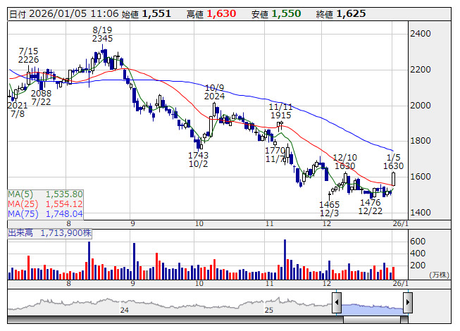 2026年01月05日11時05分 【材料】カバーは高い、開発中のスマホゲーム「ホロライブドリームス」に期待感 カバー <日足> 「株探」多機能チャートより カバー<5253>は高い。同社が運営するVチューバー事務所「ホロライブプロダクション」が2025年12月31日、開発中のスマートフォンゲームについて正式タイトルが「hololive Dreams(ホロライブドリームス)」に決定したと発表した。あわせて同ゲームの公式Xアカウントも開設した。今後の展開に期待感が高まっているようだ。 ホロドリはホロライブの音楽が楽しめるゲーム。全世界同時リリースを計画している。昨年3月に同ゲームの開発を発表した。 出所:MINKABU PRESS