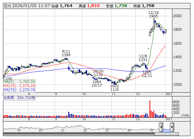 ラクスル <日足> 「株探」多機能チャートより■財務省 : 1月5日受付