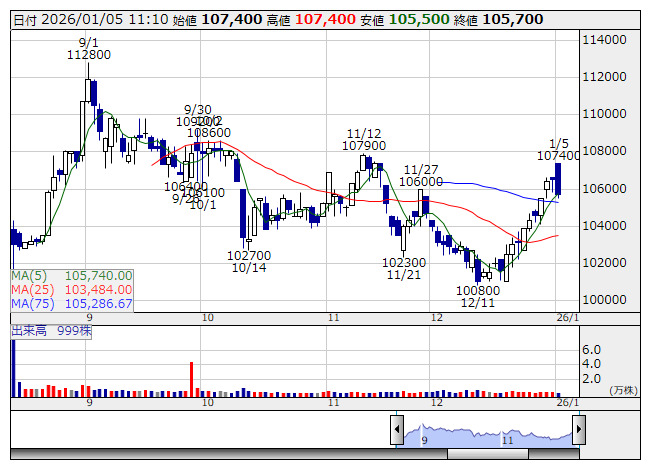 霞ヶ関ホテル <日足> 「株探」多機能チャートより■財務省 : 1月5日受付