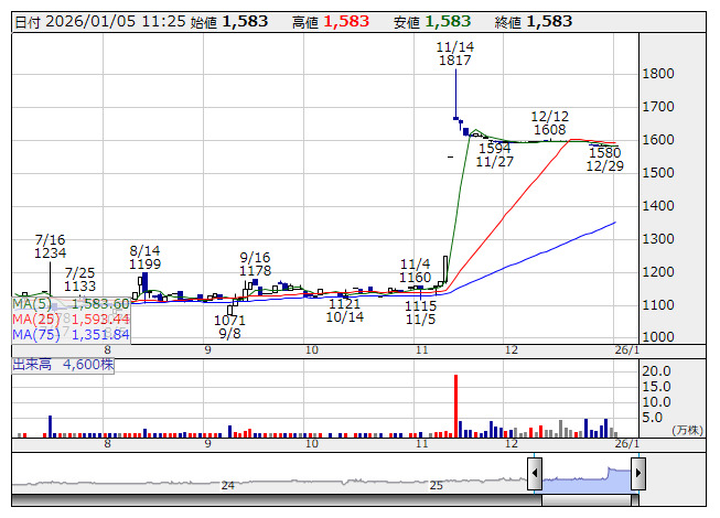 サンユ <日足> 「株探」多機能チャートより■財務省 : 1月5日受付