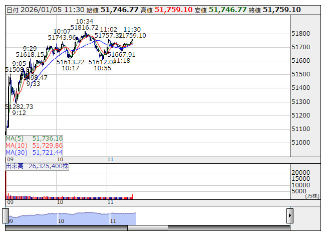 【市況】日経平均5日前引け=3日ぶり反発、1419円高の5万1759円