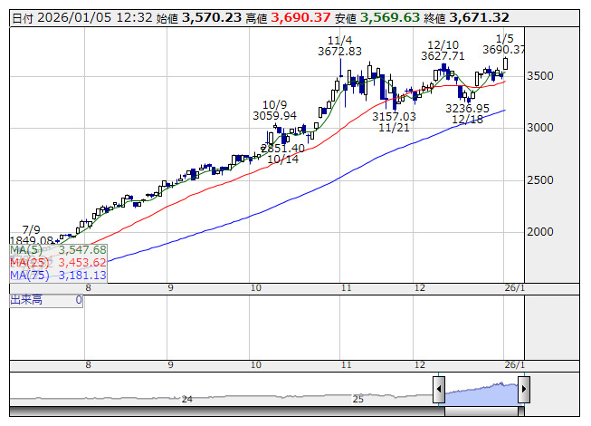 非鉄金属 <日足> 「株探」多機能チャートより●東証33業種 値上がり: 33 業種 値下がり: 0 業種