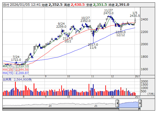 2026年01月05日12時41分 【材料】スズキが3日続伸、26年度にEV生産開始で国内100万台体制維持と報道 スズキ <日足> 「株探」多機能チャートより スズキ<7269>が3日続伸している。2025年12月31日付の日本経済新聞朝刊が「スズキは2026年度から国内で電気自動車(EV)の生産を始める」と報じた。軽自動車のEVを生産することで国内生産100万台体制を維持する方針を示しており、好感した買いが集まっている。 出所:MINKABU PRESS