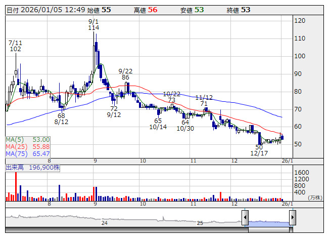 オルトP <日足> 「株探」多機能チャートより■財務省 : 1月5日受付