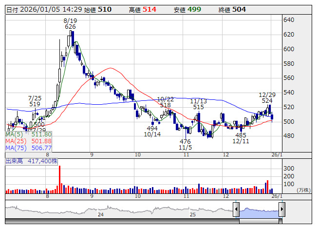 2026年12月期~2028年12月期までのフィスコ予想営業利益CAGRは+19.5%、中計最終年度は同+11.1%と予想する。マーケットの平均的なPER15倍を最終年度の予想に当てはめた場合、株価は700円を上回る。フィスコ予想による利益成長率を考慮した株価(900円)、類似企業の今期予想PER平均17倍(637円)も考慮して、今後1年程度の目標株価を768円とした。株主還元も手厚く、株価の下値も堅いと想定される。