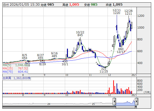 ヒーハイスト <日足> 「株探」多機能チャートより個別ではヒーハイスト<6433>、日本精密<7771>がストップ高。ANAPホールディングス<3189>、メタプラネット<3350>、協和コンサルタンツ<9647>は一時ストップ高と値を飛ばした。太洋基礎工業<1758>、第一建設工業<1799>、佐藤渡辺<1807>、イチケン<1847>、大成温調<1904>など112銘柄は昨年来高値を更新。大黒屋ホールディングス<6993>、AIストーム<3719>、千代田化工建設<6366>、リミックスポイント<3825>、エブレン<6599>は値上がり率上位に買われた。