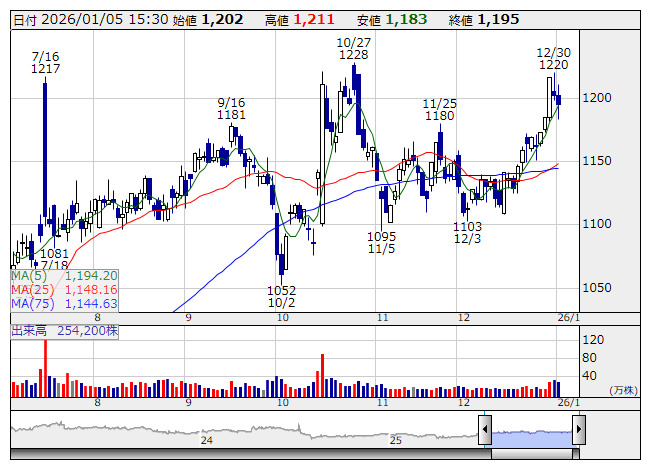 ベクトル <日足> 「株探」多機能チャートより■財務省 : 1月5日受付