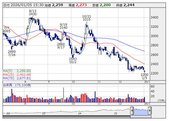 ボードルア <日足> 「株探」多機能チャートより■財務省 : 1月5日受付