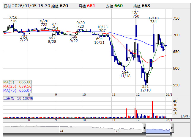 ハピネス&D <日足> 「株探」多機能チャートより■財務省 : 1月5日受付