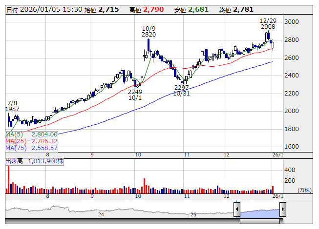 ネクステージ <日足> 「株探」多機能チャートより◆今期【最高益】を予想する銘柄(サプライズ順)