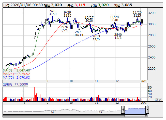 3252>が反発している。同社は5日取引終了後、25年12月期第4四半期(10~12月)の仕入れ状況を公表。スーパー、ドラッグストア、ディスカウントストア、コンビニエンスストア、カーディーラー、ホテル、複合商業施設、中古品買取販売、ホスピス、病院、タンクターミナル、工場・倉庫、物流、その他をテナント業種とする開発用地を64件・553億円(今期累計は115件・1420億円)を仕入れたとしており、将来の業績への寄与が期待されているようだ。
