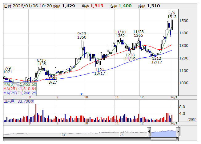 北野建 <日足> 「株探」多機能チャートより■財務省 : 1月6日受付