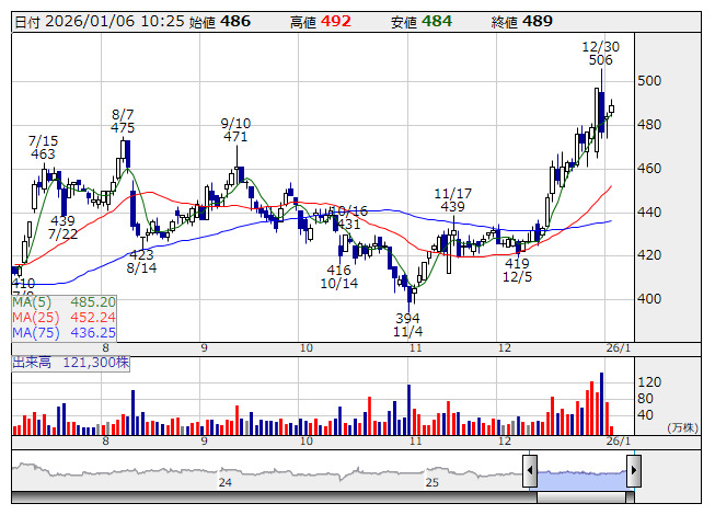 2026年01月06日10時26分 【材料】Jトラスト---自己株式の取得状況 Jトラスト <日足> 「株探」多機能チャートより Jトラスト<8508>は5日、会社法第165条第3項の規定により読み替えて適用される同法第156条の規定に基づく自己株式の取得について、取得状況(途中経過)を発表した。 取得対象株式の種類は普通株式で、取得した株式の総数は131,300株、株式の取得価額の総額は0.63億円となっている。取得期間は2025年12月1日から2025年12月31日までで、約定ベースでの実績としている。 《NH》 提供:フィスコ