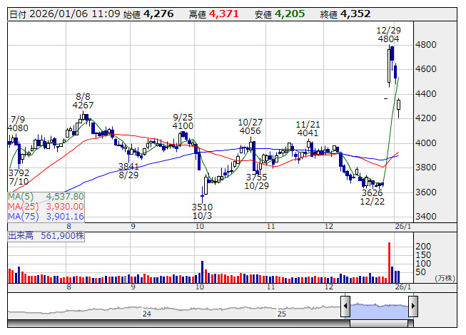 2026年01月06日11時09分 【材料】クスリのアオキ---大幅続落、業績上振れは織り込んだとして欧州系証券が投資判断格下げ クスリアオキ <日足> 「株探」多機能チャートより クスリのアオキ<3549>は大幅続落。UBS証券では目標株価を4830円から5000円に引き上げているものの、投資判断は「バイ」から「ニュートラル」に格下げしている。既存店売上の好調を背景に26年5月期以降の業績予想を上方修正している。ただし、25年末にかけての株価上昇を受けて、業績の上振れはほぼ織り込んだとみているもよう。一段の株価上昇には、中計の営業利益目標達成確度の高まりが必要と考えているようだ。 《HM》 提供:フィスコ