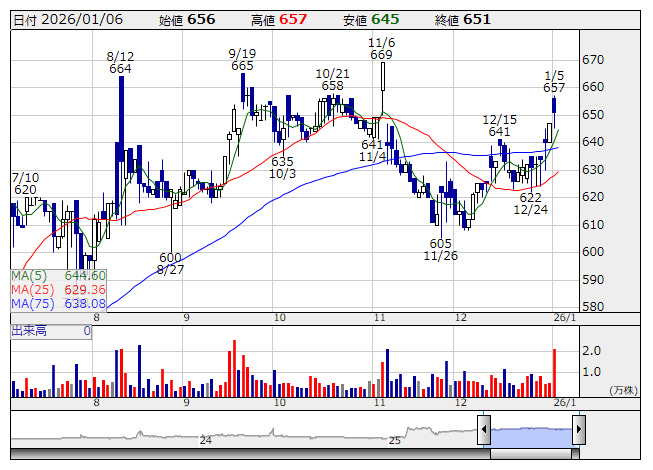 ランシステム <日足> 「株探」多機能チャートより6日前場 ストップ高: 5銘柄 ストップ安: 0銘柄 (気配、一時を含む)