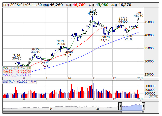 日経レバ <日足> 売買代金 「株探」多機能チャートより売買代金
