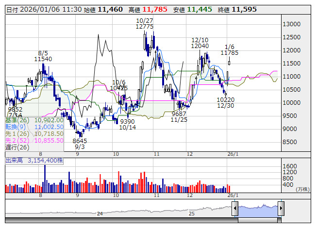 <7012> 川崎重工業 11595 +395 ( +3.5%) 2