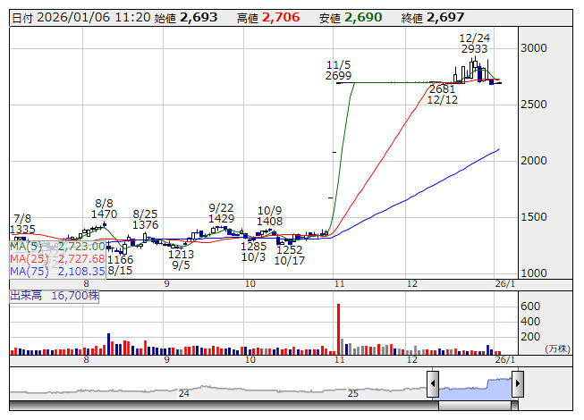 ブレインP <日足> 「株探」多機能チャートより■財務省 : 1月6日受付