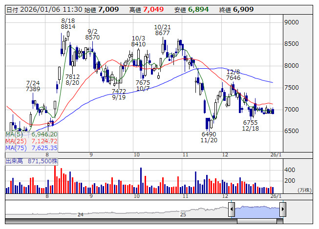 楽天銀 <日足> 「株探」多機能チャートより■財務省 : 1月6日受付