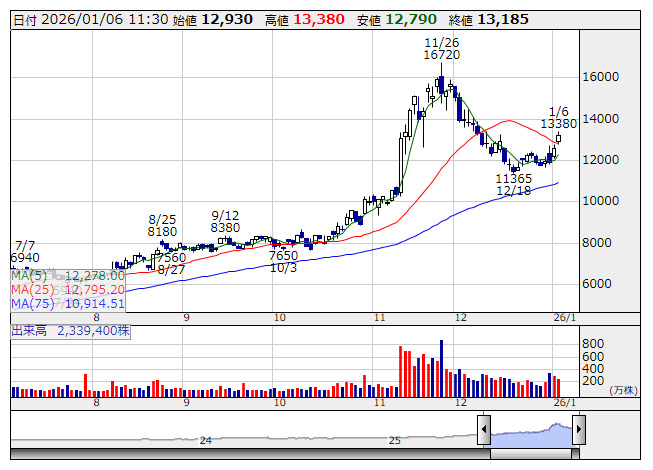 三井海洋 <日足> 「株探」多機能チャートより■財務省 : 1月6日受付