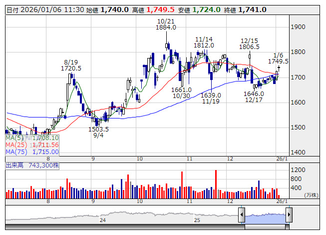 日本取引所 <日足> 「株探」多機能チャートより■財務省 : 1月6日受付