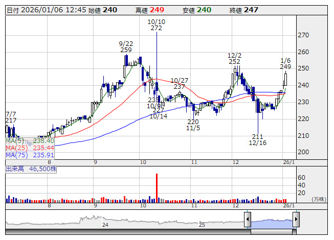 【材料】コックスは5日続伸、12月既存店売上高は4カ月連続前年下回るも織り込み済み