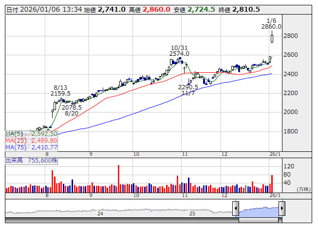 6925>は大幅続伸。モルガン・スタンレーMUFG証券では投資判断を「イコールウェイト」から「オーバーウェイト」に格上げ、目標株価も2200円から3100円に引き上げている。半導体メーカーは、CoWoS-Lの製造能力が不足していることから、同じブリッジ型のEMIB-Tの採用を検討していると指摘。EMIBの製造ラインでは同社の分割投影露光装置が大量に採用されているため、今後大きな恩恵を受ける可能性があると期待しているもよう。