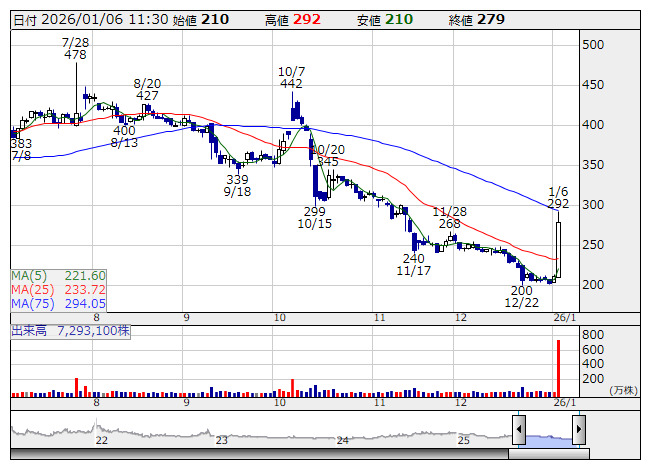 ■出来高変化率上位 [1月6日 13:30 現在]