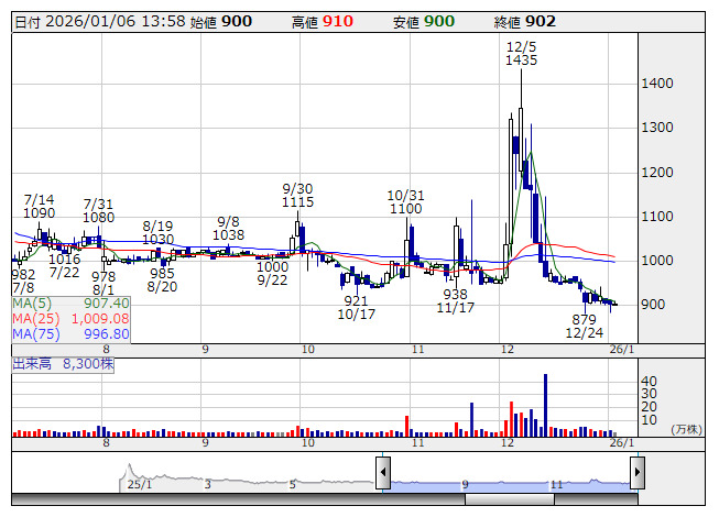 visumo <日足> 「株探」多機能チャートより■財務省 : 1月6日受付