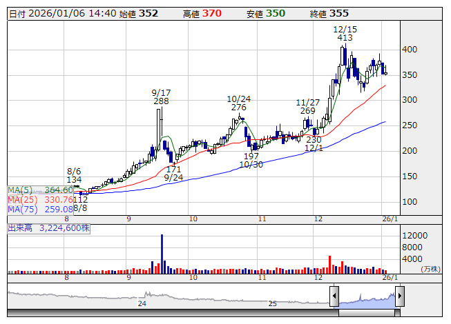 KLab <日足> 「株探」多機能チャートより■財務省 : 1月6日受付