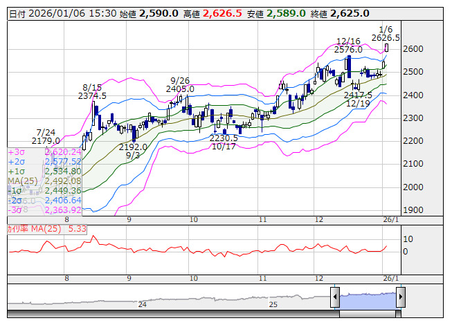 <8306> 三菱UFJ 2625 +80 ( +3.1%)
