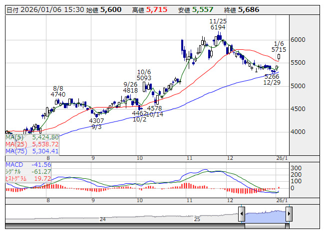 <6701> NEC 5686 +252 ( +4.6%) -41.6