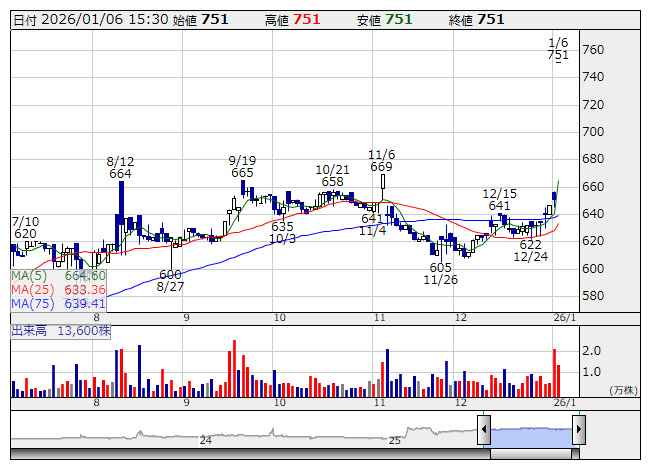 ランシステム <日足> 「株探」多機能チャートより6日大引け ストップ高: 8銘柄 ストップ安: 0銘柄 (気配、一時を含む)