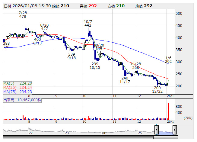 【材料】本日のランキング【寄付からの値上がり率】 (1月6日)