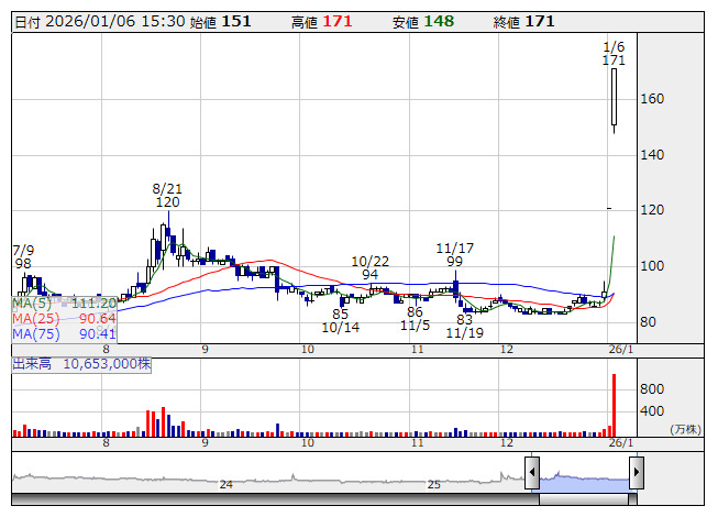 【材料】本日のランキング【値上がり率】 (1月6日)