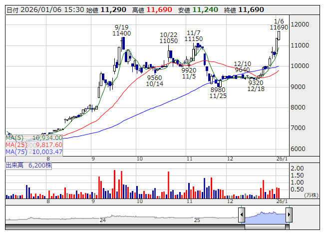 イワブチ <日足> 「株探」多機能チャートより■財務省 : 1月6日受付