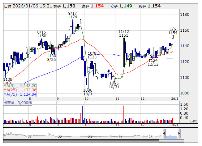 ミアヘルサ <日足> 「株探」多機能チャートより■財務省 : 1月6日受付
