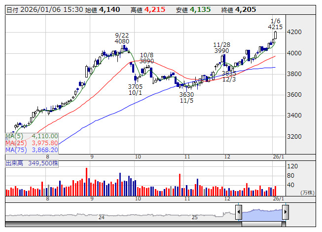 クレハ <日足> 「株探」多機能チャートより■財務省 : 1月6日受付