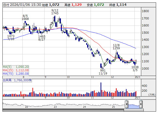 Appier <日足> 「株探」多機能チャートより■財務省 : 1月6日受付