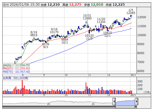 富士電機 <日足> 「株探」多機能チャートより■財務省 : 1月6日受付