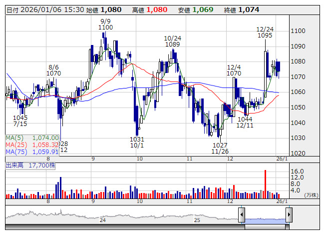 2026年01月06日16時30分 【材料】藤商事が26年3月期第3四半期に投資有価証券売却益を計上へ 藤商事 <日足> 「株探」多機能チャートより 藤商事<6257>がこの日の取引終了後、保有する投資有価証券の一部を売却したのに伴い、26年3月期第3四半期に投資有価証券売却益17億2100万円を特別利益として計上すると発表した。なお、通期業績予想への影響はその他の要因を含めて精査中としている。 出所:MINKABU PRESS