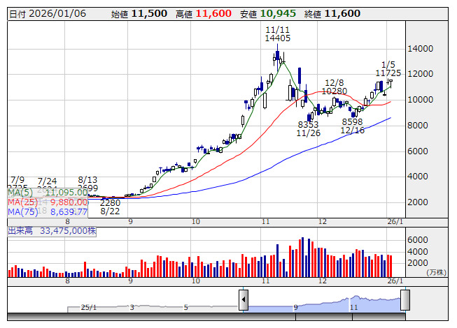 <285A> キオクシア 596257 ( 458) 13,000 +1,400 (+12.1%)
